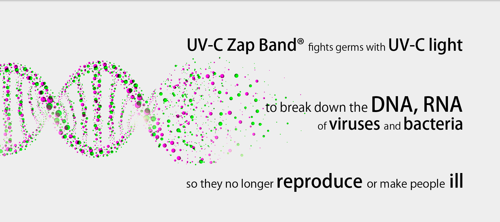 Ultra-Violet (UV) light is invisible to the human eye and is divided into UV-A, UV-B and UV-C. UV-C is found within 200-280 nm range. UV-C Zap Band light is focused in this spectrum which is effective against viruses and bacteria. Microorganisms effective resistance to UV light varies considerably. Moreover, the environment of the particular microorganism greatly influences the radiation dose needed for its destruction